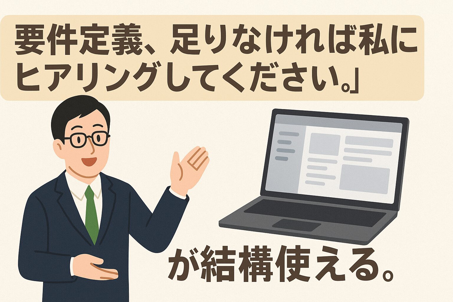 「要件定義、足りなければ私にヒアリングしてください。」