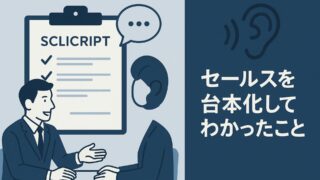 5.営業・セールス セールスを台本化してわかったこと ― 話すのが得意でなくても成果が出る「聞く設計」 セールスが苦手でも成果を出す方法は「話術」ではなく「設計」。台本化により成約率が上がった実体験を、質問設計・プロセス・改善の視点で解説。個別相談セールスで月次売上を伸ばした要因も紹介。 2025.10.12 5.営業・セールス