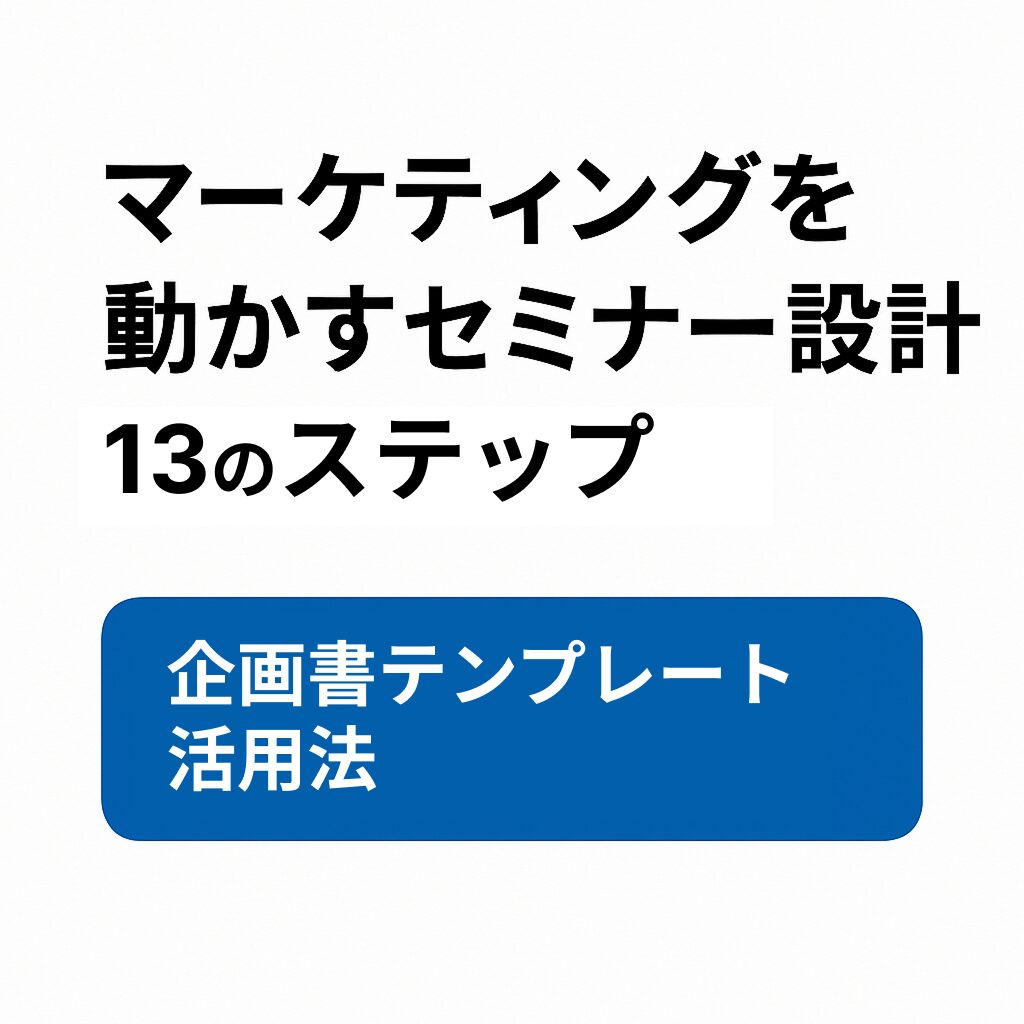 以下13項目を順に検討・整理していくことで、セミナーを“単発の催し”から“マーケティング施策の一部”へと転換できます。各項目において「設計上押さえるべき論点」「実践上のヒント」を併記します。