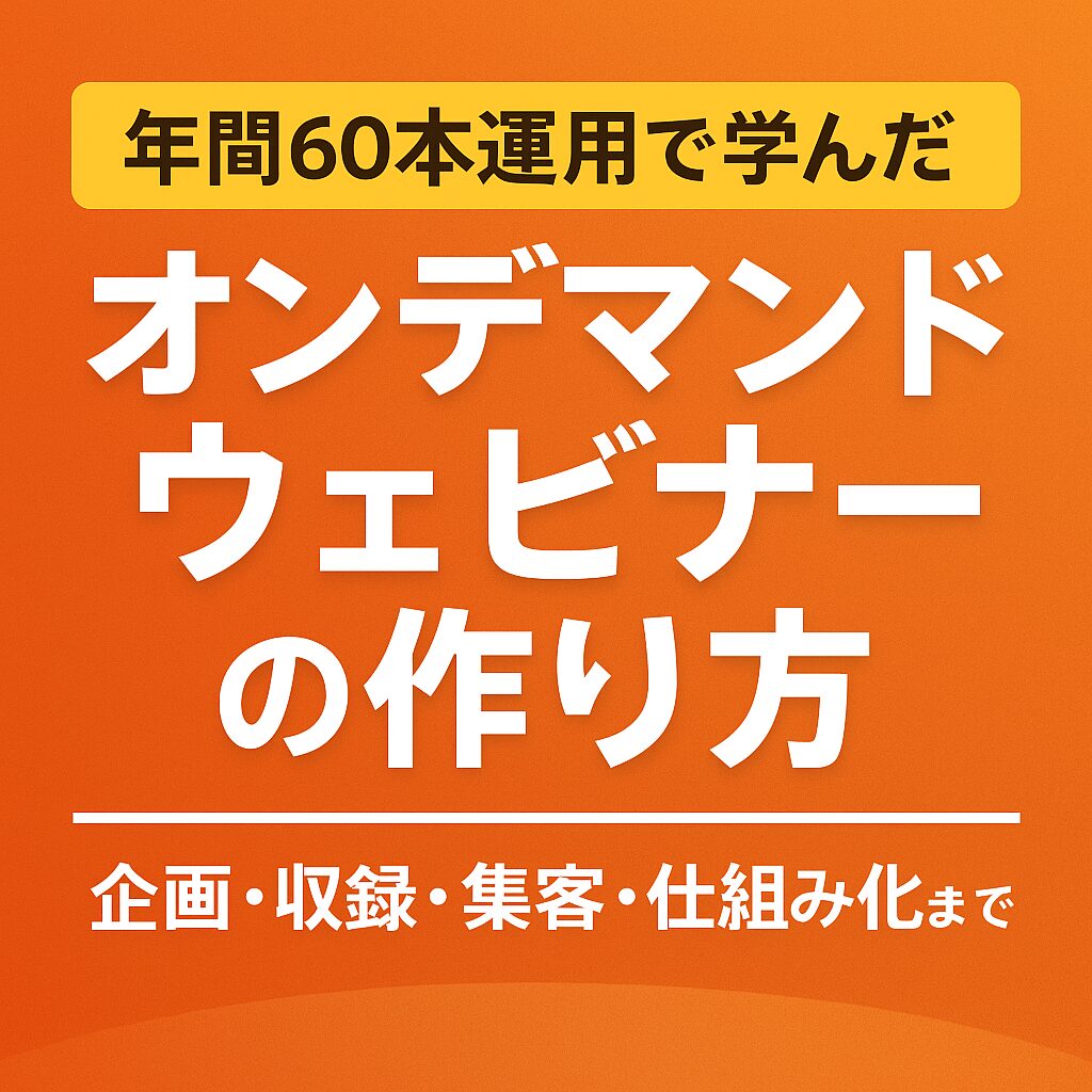 オンデマンドウェビナーは「売上に直結するコンテンツ資産」です。一方で、実務は細かく、初速で失敗すると続きません。本記事は、誰でも社内で回せる運用テンプレとして、私のやり方を具体例付きで公開します。自社の業界や商材に合わせて、そのままご活用ください。